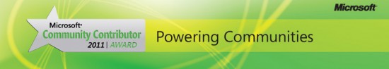 This morning, I was surprised and delighted to receive an email for being awarded Microsoft Community Contributor 2011 Award from Microsoft in recognition of my online community contributions!