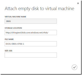 From the virtual machine configuration screen, click Create Disk and specify the size.