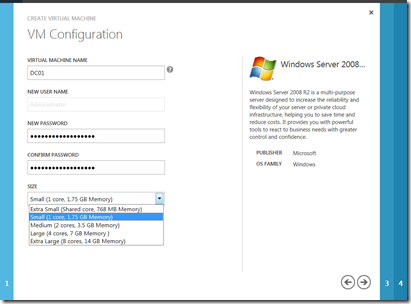 From the management portal we choose the Virtual Machine option to either create quickly or choose from the gallery of platform images. An image is a virtual hard drive (VHD) file that can be used to create a disk for a virtual machine. There are 4 steps to create virtual machine as illustrated in the screenshots below.