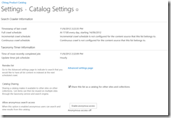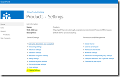 This part is new for SharePoint 2013. Since we have the cross site collection publishing feature enabled, in the list settings there is an option Catalog Settings available. We are interested in three options: