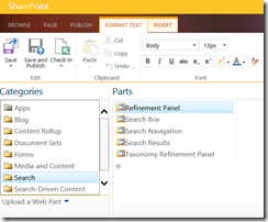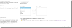 - Term Sets – As part of Managed Metadata Service, the terms created here will be used to drive the managed navigation, faceted navigation and search refiners