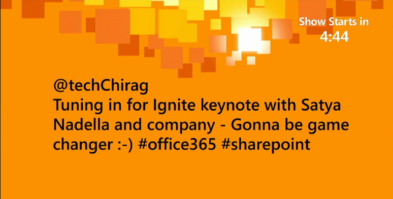 Prior to the keynote broadcast, there was a pre-keynote show with Joey Snow, visiting the demo rooms by Brad Anderson and featuring few eye catching tweets, which coincidentally one of them was mine!