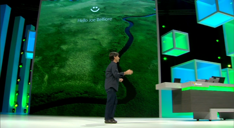 Joe Belfiore demonstrating the universal app switching between mobile device and desktop applications. ![]()