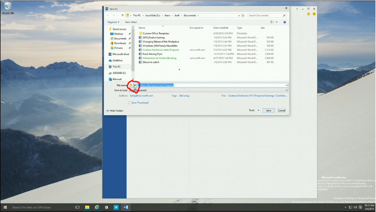 Windows 10 File encryption options at point of saving the document. ![]()