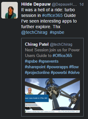 Good things come to those who wait and SharePoint Saturday Belgium 2016 certainly did that for me. The event was held in Brussels on Saturday 15th October and it was very well organised by the BIWUG (Belgian Information Worker User Group) team. My thanks to the entire team (including sponsors and speakers) who made this happen and in particular Thomas Vochten and Elio Struyf for their hard work and thanks for having me. It was also good to meet other speakers and some folks from the UK too!
