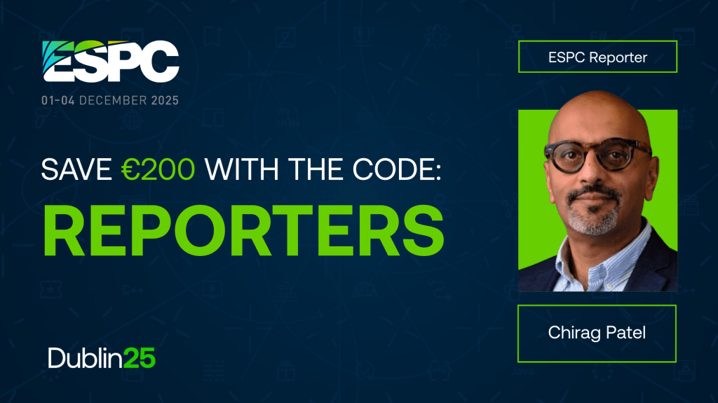 See you in Dublin and don’t forget to use the discount code ESPC25CHIRAG or REPORTERS to save on tickets!!