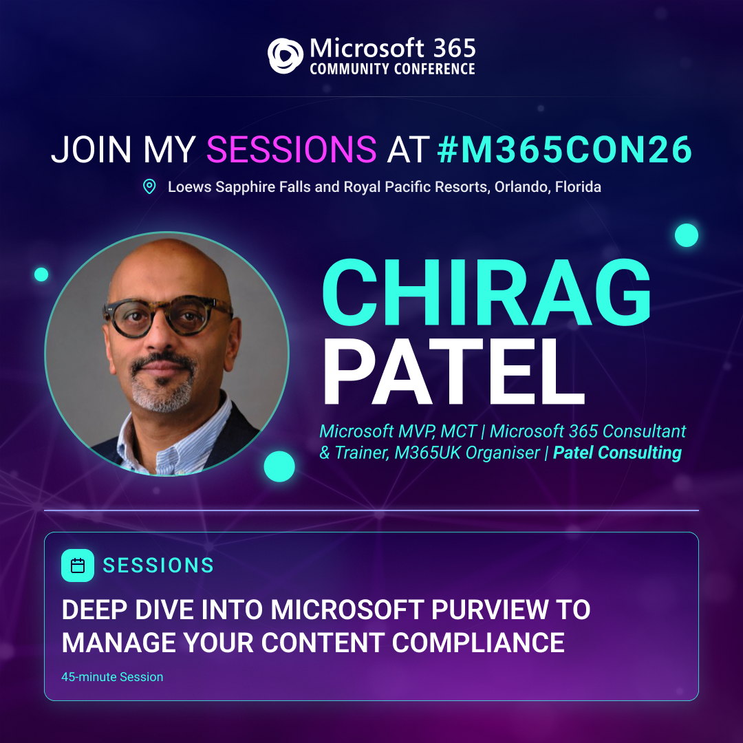 I’m also looking forward to delivering a session on “Deep Dive into Microsoft Purview to Manage Your Content Compliance in Microsoft 365″✅ happening on 21-23 April 2026 at Loews Sapphire Falls and Loews Royal Pacific Resorts!